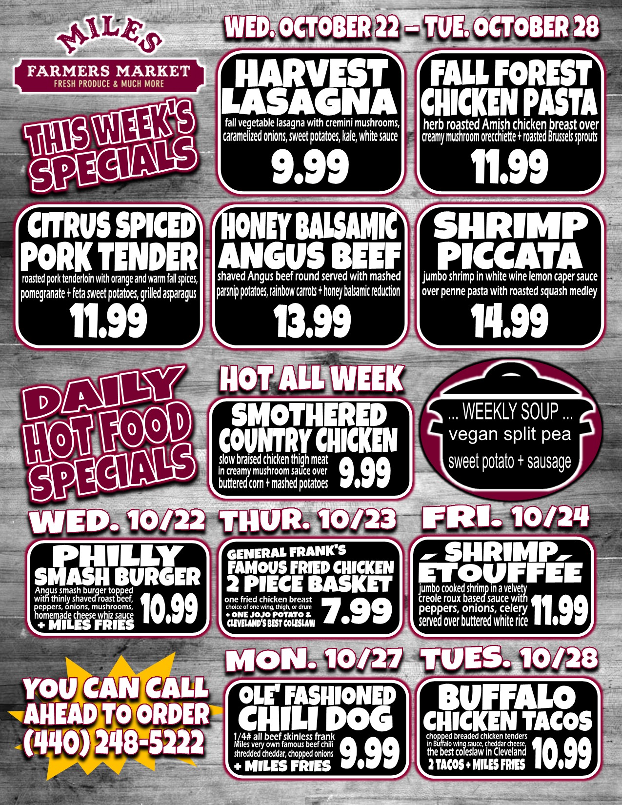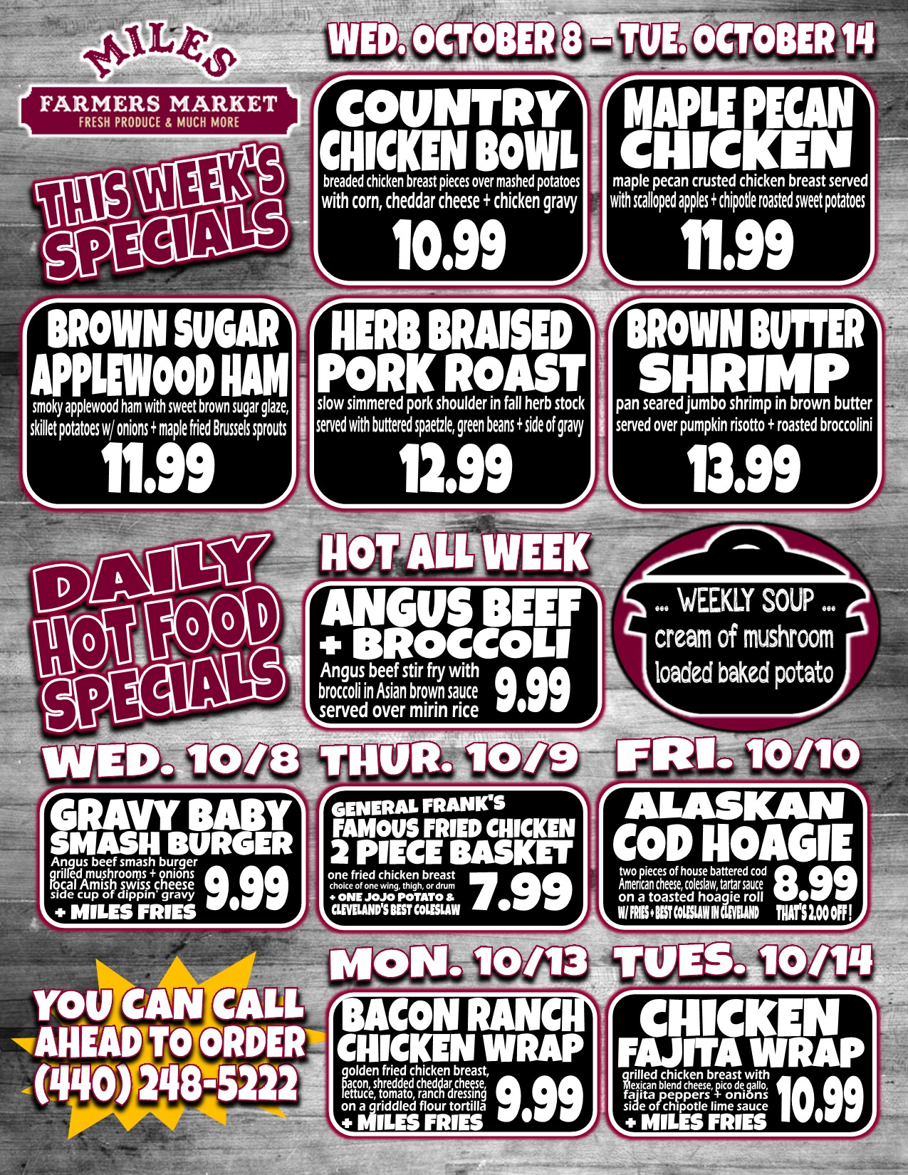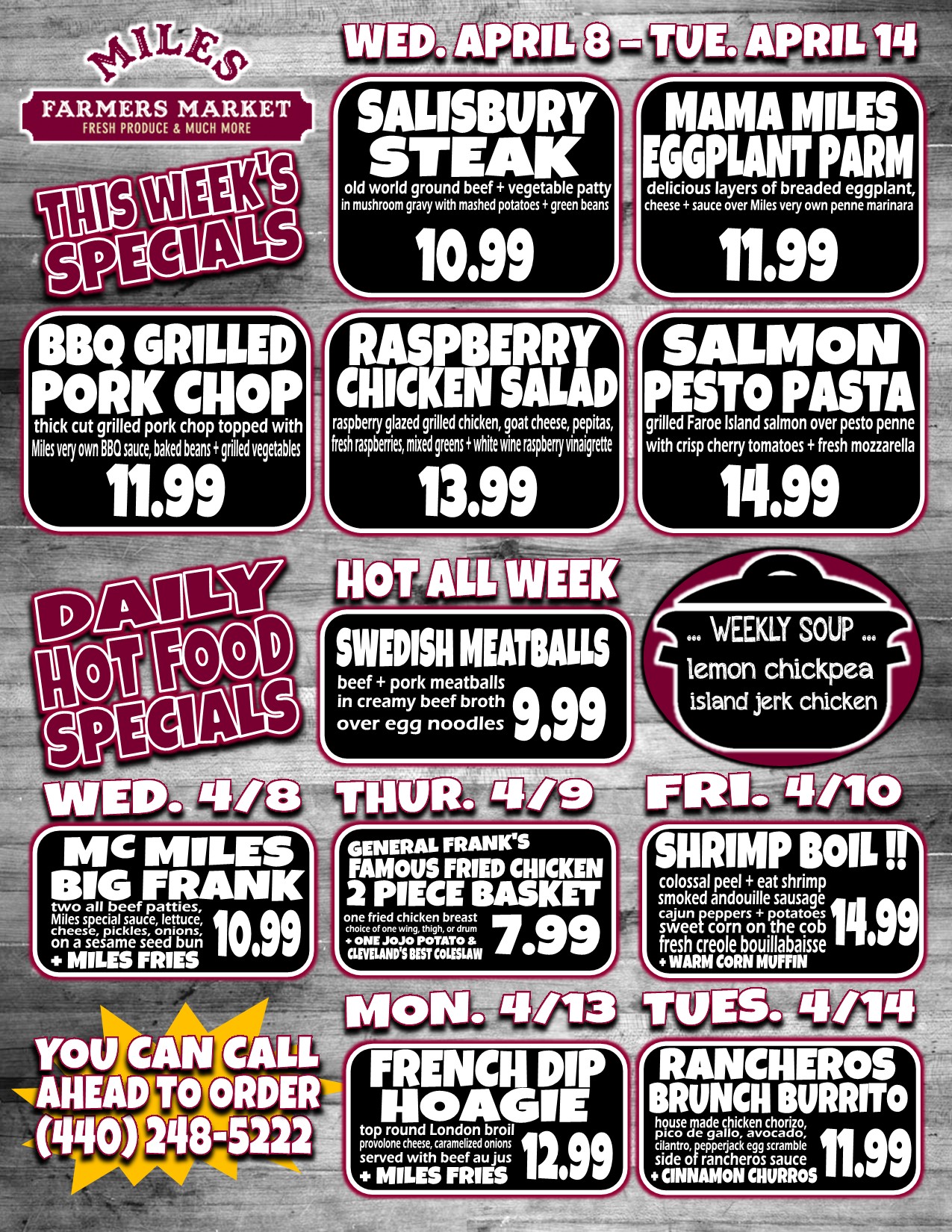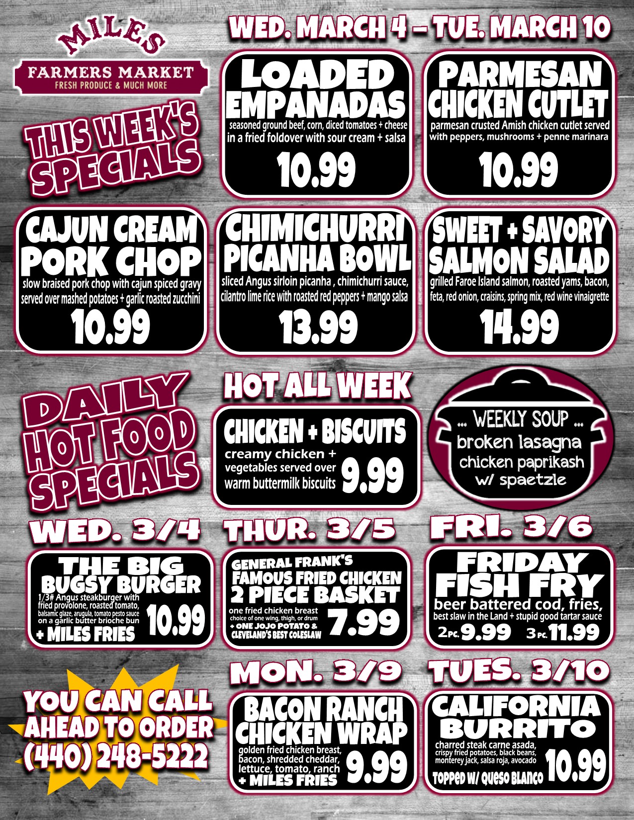Check out our weekly flyer and lunch and dinner specials. Be sure to check back each week so you don’t pass up on the best deals at Miles!