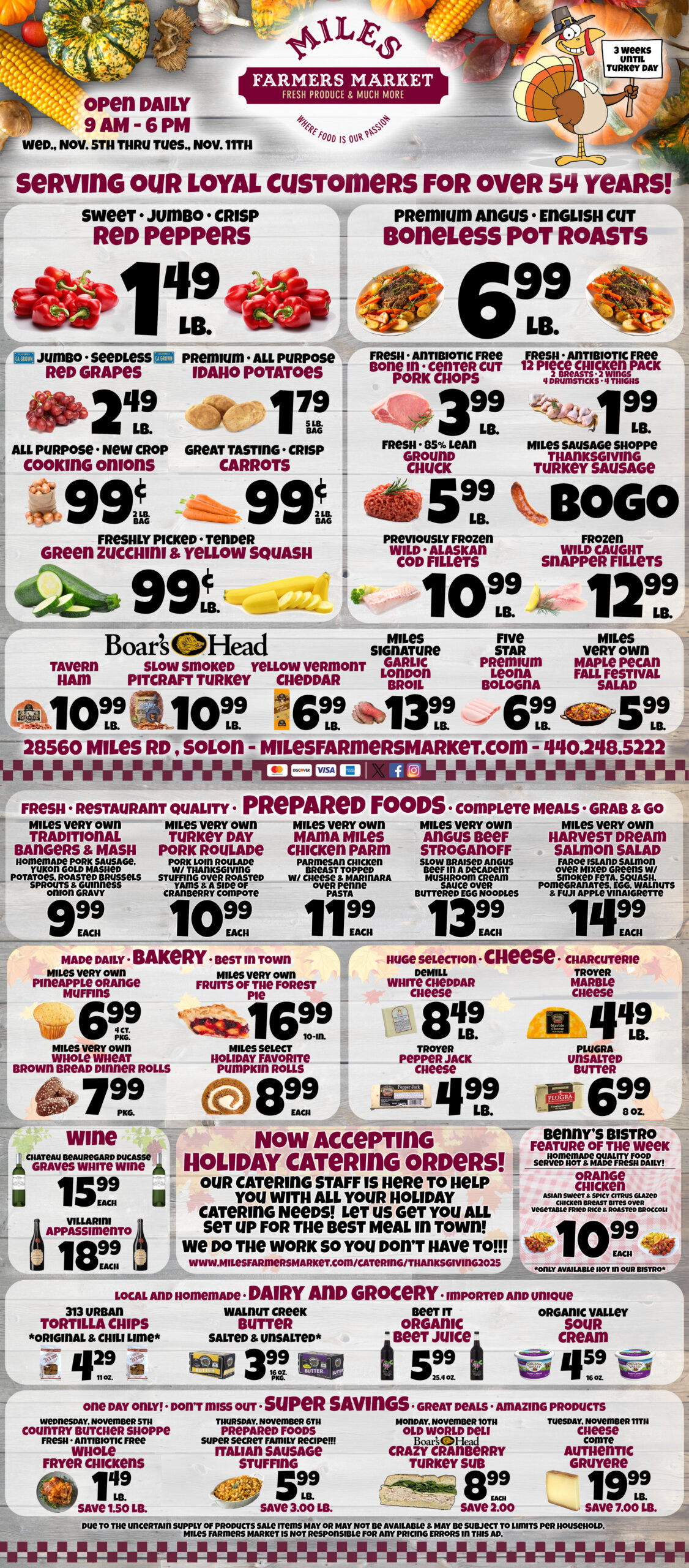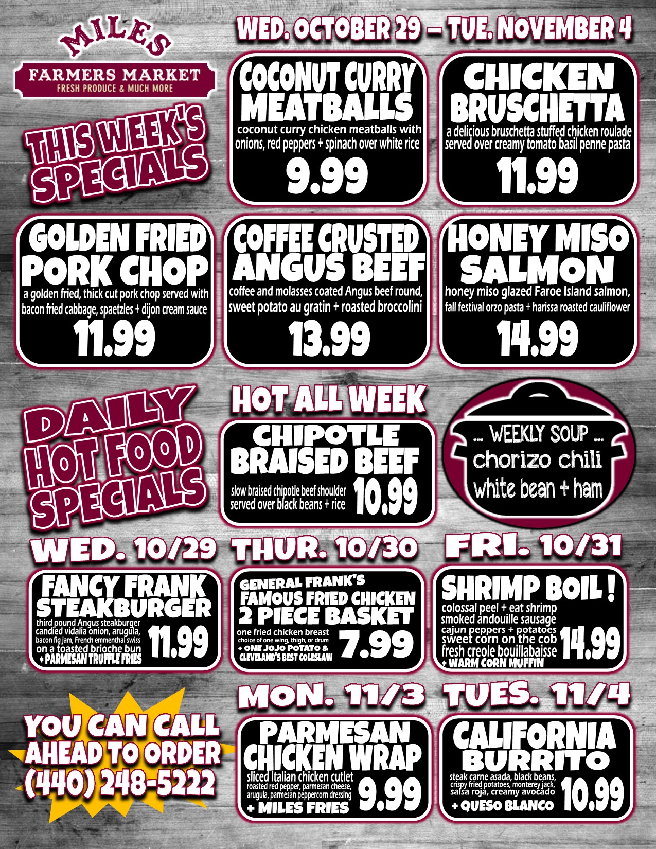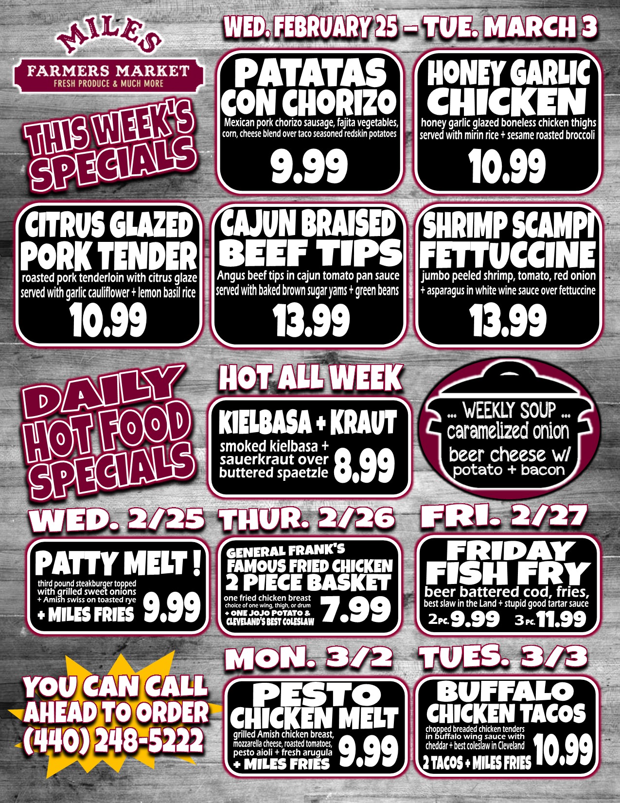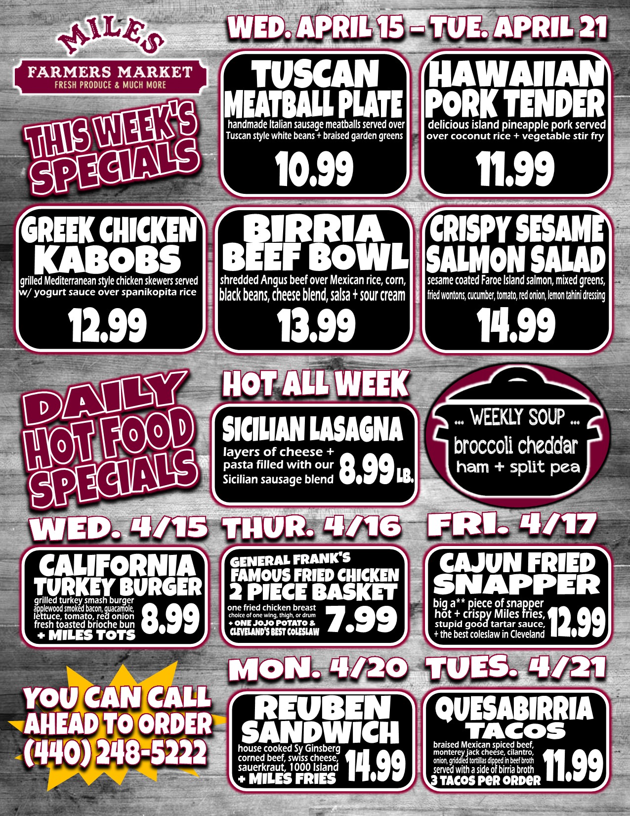 Check out our weekly flyer and lunch and dinner specials. Be sure to check back each week so you don’t pass up on the best deals at Miles!