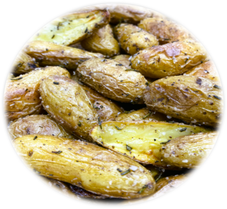 Roasted fingerling potatoes tossed with olive oil, sea salt, cracked pepper, and fresh rosemary, then roasted until golden with crisp edges and a tender center.